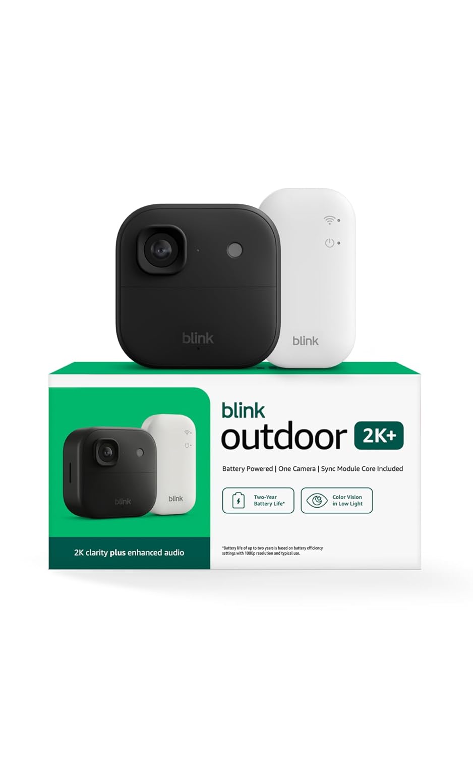 Battery-powered protection, now in 2K — Blink Outdoor 2K+ is our next-generation wireless smart security camera that delivers an improved visual and audio experience with sharp 2K video resolution and Color Vision in low light. 2K video clarity — See more of what matters with sharper 2K video resolution. From subtle textures to defined edges, every frame reveals rich detail and enhanced color even in challenging light conditions.